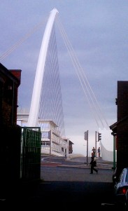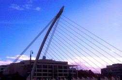 Below | The “leaning tower of glass” was gorgeous from every angle, inside and out, framed by Spanish architect Santiago Calatrava’s Samuel Beckett Bridge, also known as the Irish/Celtic “harp”