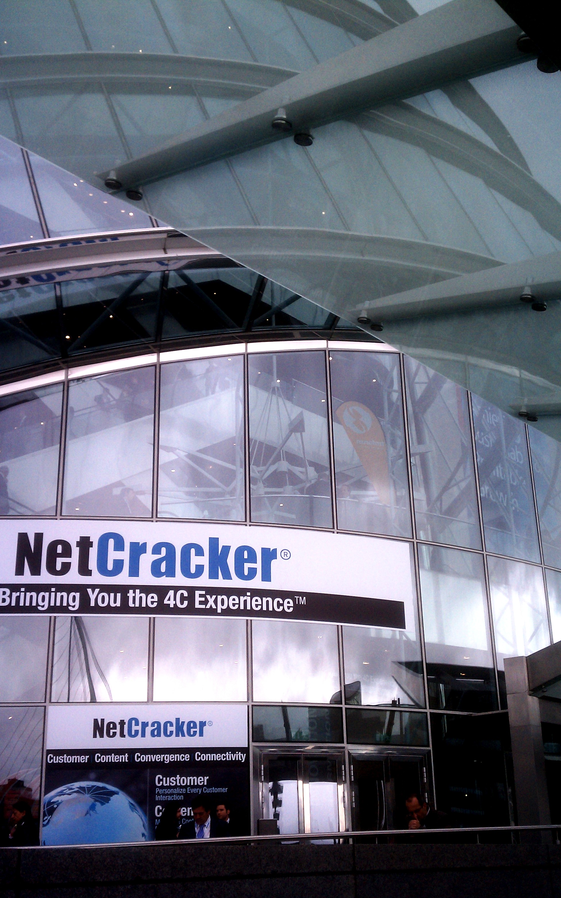 Once upon a time I led a team that covered the marquee space at a Supercomm event venue with a massive banner about my company at the time, CommTech (later acquired by ADC, now rebranded TE Connectivity). So special kudos to our friends at NetCracker for capturing the marquee space–as pictured at left–on what is thus far the most breathtaking venue ever to host a TM Forum event.