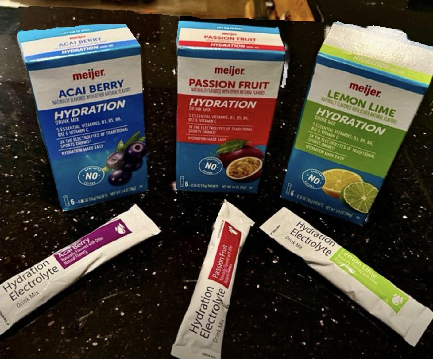 To whet my whistle between meals, I mix a packet of Meijer Hydration in a 38oz daily hydration-sized water bottle with filtered water and ice. Because other than meals or after a hot outdoor work or workout day, I still hate drinking plain water, and the right drink mix makes it taste great. Along those glasses of straight water at lunch and dinner, I may be better hydrated now than I’ve ever been in my life.