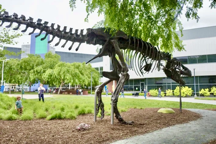 Stan the Dinosaur is a full-size bronze replica of the skeleton of a Tyrannosaurus Rex who menacingly greets visitors to a courtyard at Plex. (Rex at Plex™?) Google’s headquarters used to belong to Silicon Graphics, which worked on the first Jurassic Park movie. One story says that Silicon Graphics installed Stan at the campus and Google decided to keep him after acquiring the complex. Another says Google simply decided to install a giant skeletal T-Rex at the Plex. The first story sounds more logical to me, but either way, word is that Stan’s presence reminds Googlers to continuously innovate in order to prevent the company from becoming a dinosaur.